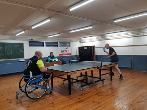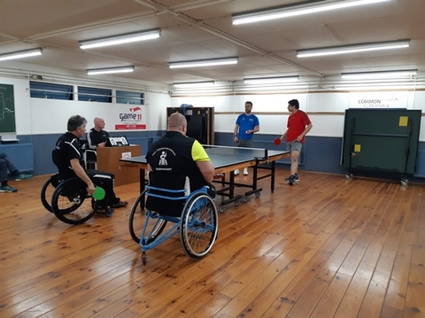 Robert die heel veel last had van de vloer die giga afliep, en dat betekend dat elke keer je rolstoel wat weg reed en je niet meer goed staat. De eerste wedstrijd ging in 4 games verloren en de tweede ook maar hier ging het veel beter beetje vals spelen (voet op de grond) maar deze keer mocht het, game standen waren best goed 8-11, 13-11, 11-13 en 14-16. Wetend dat je je voet op de grond zet ging het heel goed in de laatste wedstrijd, want Fred had de eerste 2 games geen kans 11-1 en 11-6 de laatste game werd het nog 11-9 voor Robert.