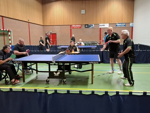De wedstrijden tegen Bredevoort begonnen stroef en voordat we het wisten stonden we met 0-3 achter, de dubbel kwam mooi op tijd om er 1-3 van te maken. De volgende drie wedstrijden wonnen wij er 2, Marco verloor nipt in 5 games (11-13) waardoor het 3-4 werd. Ook op 3 opvolgende partijen wonnen we er weer 2 en verloor André in 5 games. De eindstand 5-5 toch tevreden want we houden 8 punten voorsprong op Bredevoort en het onderling resultaat is beter.