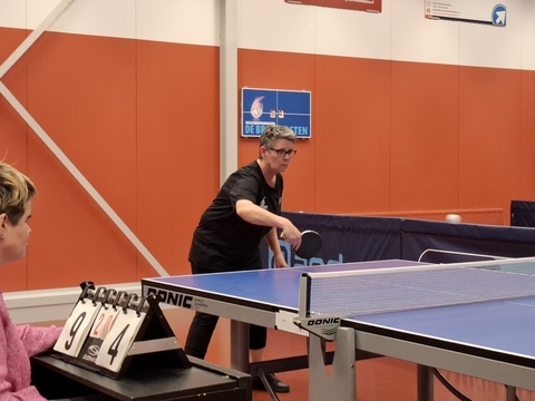 Angelien tegen Thomas dat in principe hun beste speler is, Angelien won deze partij knap met 12-10, 11-9 en 11-4 en omdat onze Robert zijn partij al had gewonnen maakte Angelien het beslissende punt 5-1. Dave mocht aantreden tegen Jesper en ook werd deze gewonnen met 3-1. Angelien dan tegen Robert, 2-0 voor en dan werd het toch nog 2-2 maar gelukkig trok Angelien deze wedstrijd toch over de streep. Dave tegen Thomas, mooie wedstrijd en heerlijke punten, Dave kwam achter met 8-11 en won de volgende met 11-8 en de derde game ging erg gelijk op maar toch won Dave deze met 12-10 en ook de vierde game met 11-8. Vervolgens mocht Robert de laatste spelen tegen Jesper maar deze ging heel eenvoudig maar Hercules 11-2, 11-4 en 11-5.