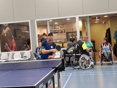 Roel in de 5e klasse, hij mist wat training maar dit komt vooral dat hij zich aan het voorbereiden is om met de handbike een berg te gaan beklimmen, na de zomer gaat hij vol voor tafeltennis. Roel werd helaas een na laatste.