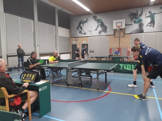 André die redelijk door al dat geschuif heen speelt dit mede door de ervaring won de eerste wedstrijd redelijk makkelijk met 3-0 maar de tweede ging in 5 games, en in de vijfde game natuurlijk een randje tegen wat einde wedstrijd was. De derde was eigenlijk een kopie van de eerste wedstrijd, 3-0 winst en zo kwam de eindstand op 4-6 nederlaag. En gingen wij van een vierde naar de vijfde plaats, maar Velp moeten we onder ons kunnen houden en degraderen we in ieder geval niet.