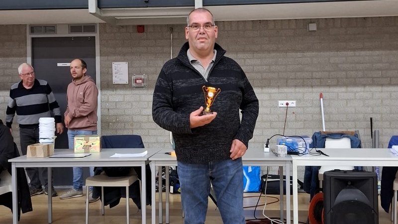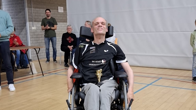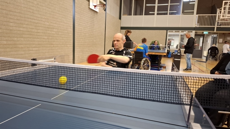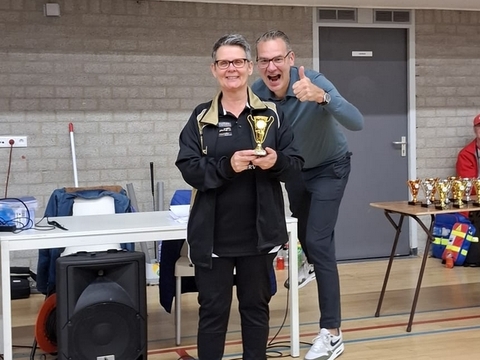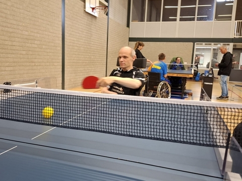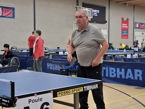 Martijn de schuiftafeltennisser van Hercules en Nederlands Kampioen zat in een poule van 3, en moest 2 wedstrijden vol aan de bak maar het ging toch makkelijk want van Henk won hij met 2-0 (11-2, 11-5) en vervolgens van Aniek ook met 2-0 (11-4, 11-4). En zo ging Martijn naar de halve finale waar hij Mark tegen kwam en de eerste game een spannende werd 11-9 maar daarna ging het gas erop bij Martijn en won hij met 11-1 waar een finale plaats stond te wachten. Liduin was daar de tegenstander maar Martijn begon voortvarend en won met 11-6 maar wat niemand had verwacht Martijn VERLIESD een game met 9-11 (achteraf zei hij al, ik maakte 7 fouten door de bal te hoog in het net te spelen) maar Martijn was niet van slag te brengen en won beslissende game ruim met 11-5 en zo is hij weer een titel rijker.