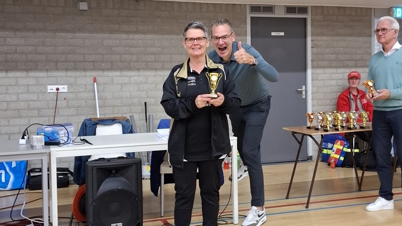 De kwartfinale ging tegen Gerard waar Angelien in Rotterdam van verloren had. Toch bleef ze goed en lekker doorslaan waar het kon en won de eerste game met 11-9 en vervolgens door goed spel ook de tweede en derde game met 11-6 en 11-9. Door naar de halve finale en wie was de tegenstander diegene waar ze tweede wedstrijd van verloor, maar nu bijna geen spanning meer en door prachtige punten te maken won Angelien verdiend met 11-4, 11-6 en 11-3. De FINALE waar Angelien de lijn doortrok en de eerste game met 11-2 won, de tweede ging gelijk op maar werd ook verloren met 10-12, een wat tips en het goede spel door te trekken won ze toch de 3de en 4de game met 11-6 en 11-9. Angelien eerste bij haar eerste officiële ranglijstoernooi.