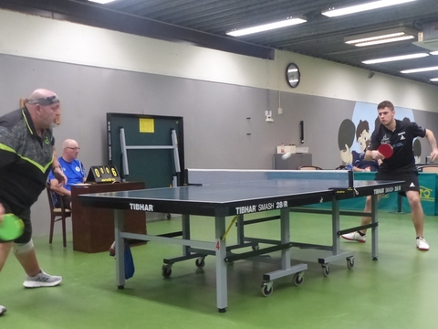 André dan tegen Stephan, hier gingen de eerste twee games erg makkelijk gewonnen met 11-4 en 11-7, de derde games een beetje dollen maar ook deze game ging gewonnen met 14-12. Marco tegen Eva dan! Kon weer volle bak spelen en een mooi resultaat 3-0 winst en moest Robert nog tegen Edwin maar deze had geen antwoord op Robert zijn spel en won heel simpel met 11-4, 11-3 en 11-6.