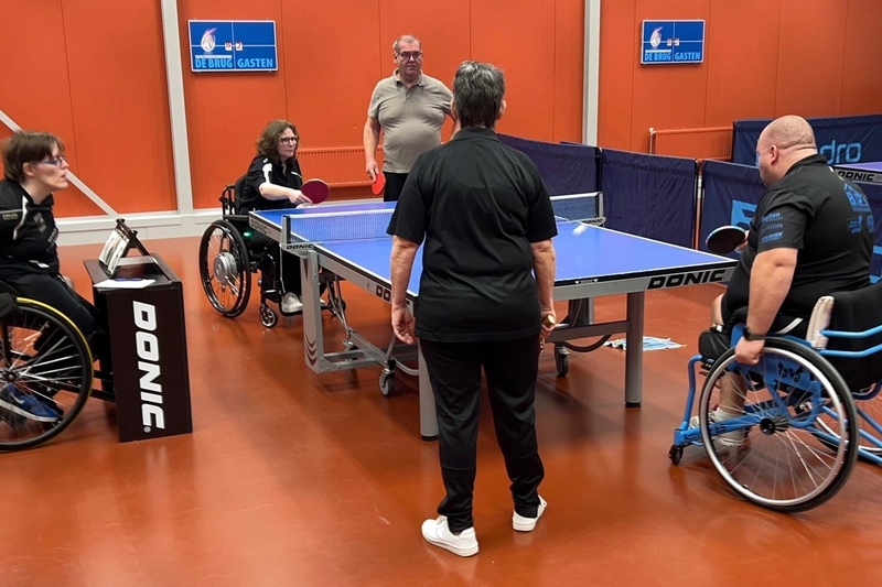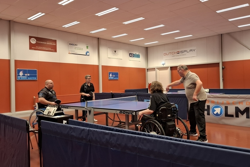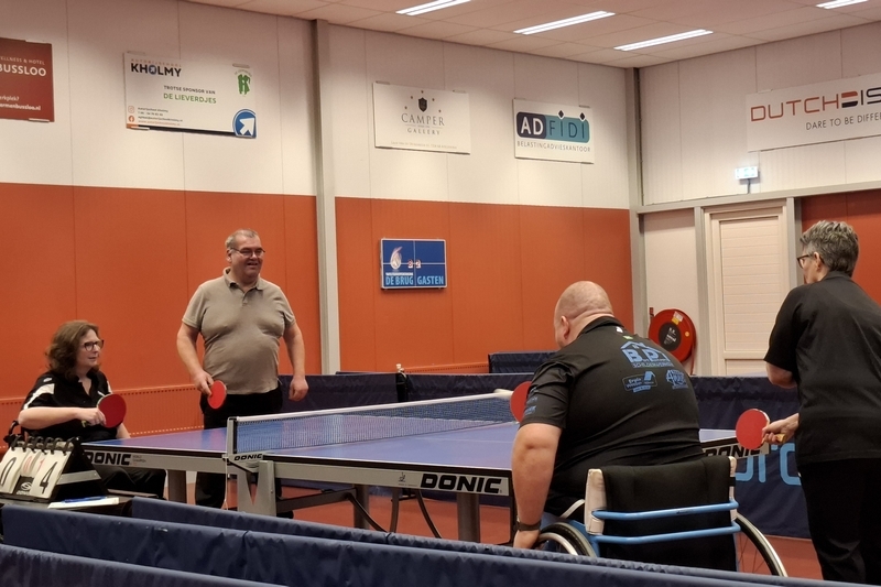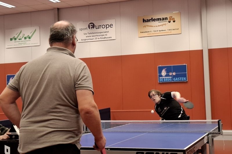 De eindstand 6-4 voor team 1. Twee wedstrijden wil ik er uitlichten Mariëlle tegen Rik, deze won Rik tegen de meer ervaren speler Mariëlle. Zo kan het niveau van onze paragroep alleen maar omhoog gaan, ook gezien de wedstrijd tussen Marco en Robert wat in 5 games werd gewonnen door Marco.