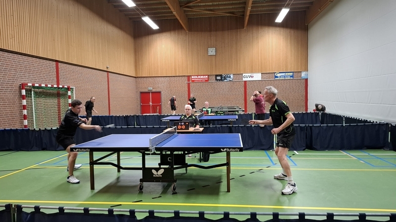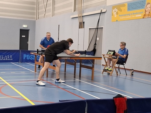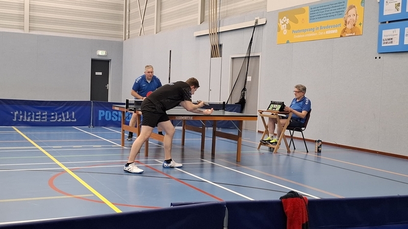De wedstrijden tegen Bredevoort begonnen stroef en voordat we het wisten stonden we met 0-3 achter, de dubbel kwam mooi op tijd om er 1-3 van te maken. De volgende drie wedstrijden wonnen wij er 2, Marco verloor nipt in 5 games (11-13) waardoor het 3-4 werd. Ook op 3 opvolgende partijen wonnen we er weer 2 en verloor André in 5 games. De eindstand 5-5 toch tevreden want we houden 8 punten voorsprong op Bredevoort en het onderling resultaat is beter.