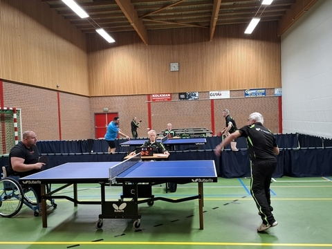 Zaterdag 8 maart 4:40 uur de deur uit, eerst Angelien ophalen en dan Robert in Doetinchem waar wij zo 5:00 uur wegreden. Negen uur arriveerde wij bij de sporthal waar een pittige dag wachten, 18 deelnemers en een poule van negen spelers. Met 8 wedstrijden in het vooruitzicht een maar even inspelen.