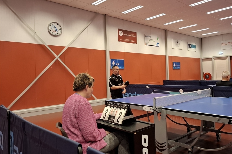 Angelien tegen Thomas dat in principe hun beste speler is, Angelien won deze partij knap met 12-10, 11-9 en 11-4 en omdat onze Robert zijn partij al had gewonnen maakte Angelien het beslissende punt 5-1. Dave mocht aantreden tegen Jesper en ook werd deze gewonnen met 3-1. Angelien dan tegen Robert, 2-0 voor en dan werd het toch nog 2-2 maar gelukkig trok Angelien deze wedstrijd toch over de streep. Dave tegen Thomas, mooie wedstrijd en heerlijke punten, Dave kwam achter met 8-11 en won de volgende met 11-8 en de derde game ging erg gelijk op maar toch won Dave deze met 12-10 en ook de vierde game met 11-8. Vervolgens mocht Robert de laatste spelen tegen Jesper maar deze ging heel eenvoudig maar Hercules 11-2, 11-4 en 11-5.