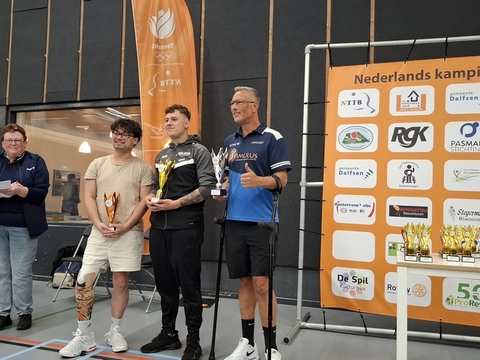 Martijn die zijn titels wilde verdedigen was niet fit maar desondanks wilde hij spelen. Een poule van 6 waar Martijn vijf partijen moest spelen, gelukkig hield hij het vol en verloor geen enkele game en is weer Nederlands Kampioen.
