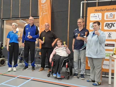 Robert speelde vorig jaar tweede klasse rolstoel en had een mooie uitdaging, vooraf zat er een derde plaats in maar er moest eerst even gespeeld worden. Na een stroeve start won hij de eerste wedstrijd en vervolgens ook de tweede van Christiaan. Tegen Erwin kwam Robert tekort maar won wel weer van Juul en zo eindigde Robert op een mooie tweede plaats.
