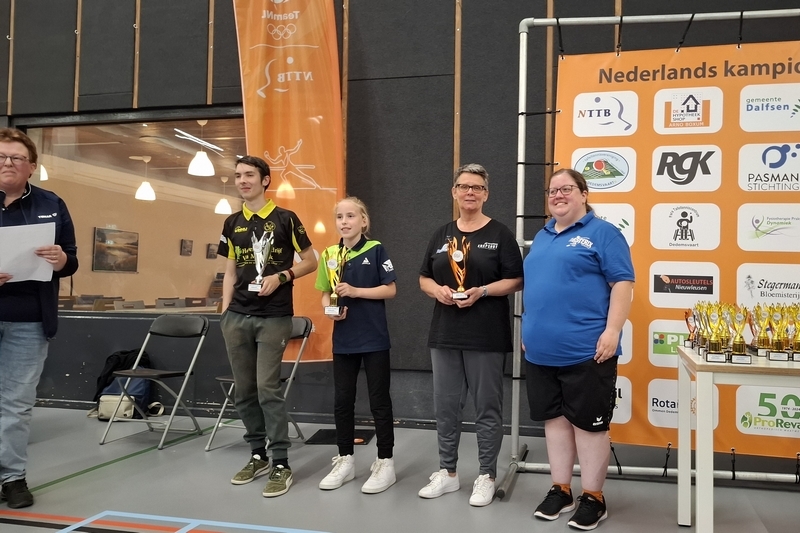 Angelien speelde met Lucas van Doing uit Zoetermeer. Een goed koppel zo bleek want zonder 1 keer samen gespeeld te hebben en geen game te verliezen zijn ze terecht Nederlands Kampioen.