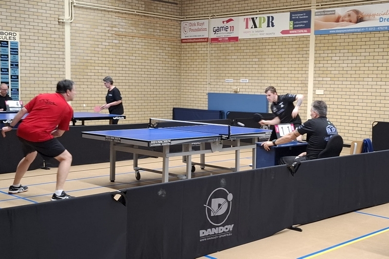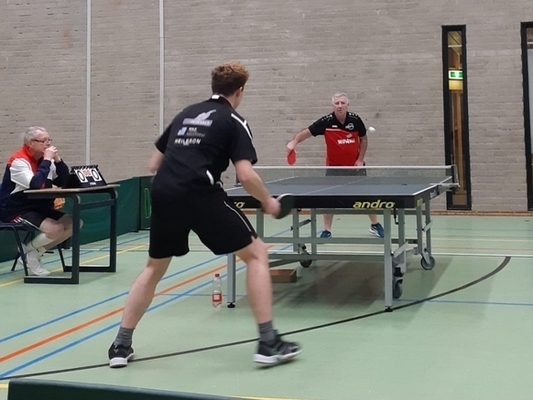 De wedstrijden tegen Bredevoort begonnen stroef en voordat we het wisten stonden we met 0-3 achter, de dubbel kwam mooi op tijd om er 1-3 van te maken. De volgende drie wedstrijden wonnen wij er 2, Marco verloor nipt in 5 games (11-13) waardoor het 3-4...