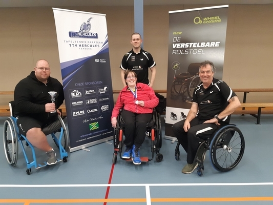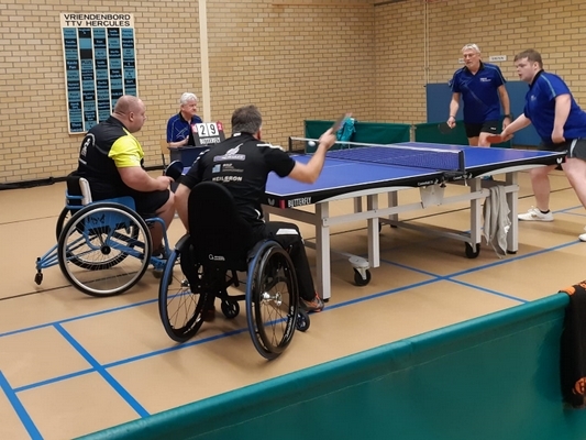 Vandaag vroeg op om met het parateam van TTV Hercules af te reizen naar Amersfoort waar het Ton van Galen Para-tafeltennistoernooi werd gehouden. Van de 9 spelers van het team kwamen er 5 in actie en André nam de coaching op zich. Marco voor het eerst 3e klasse...